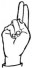 На ћирилици написано ВУЧИЦА ЧЕРКОВИЋ састоји се из 14 слова [?]. Исписано ћириличном једноручном азбуком за глувонеме: